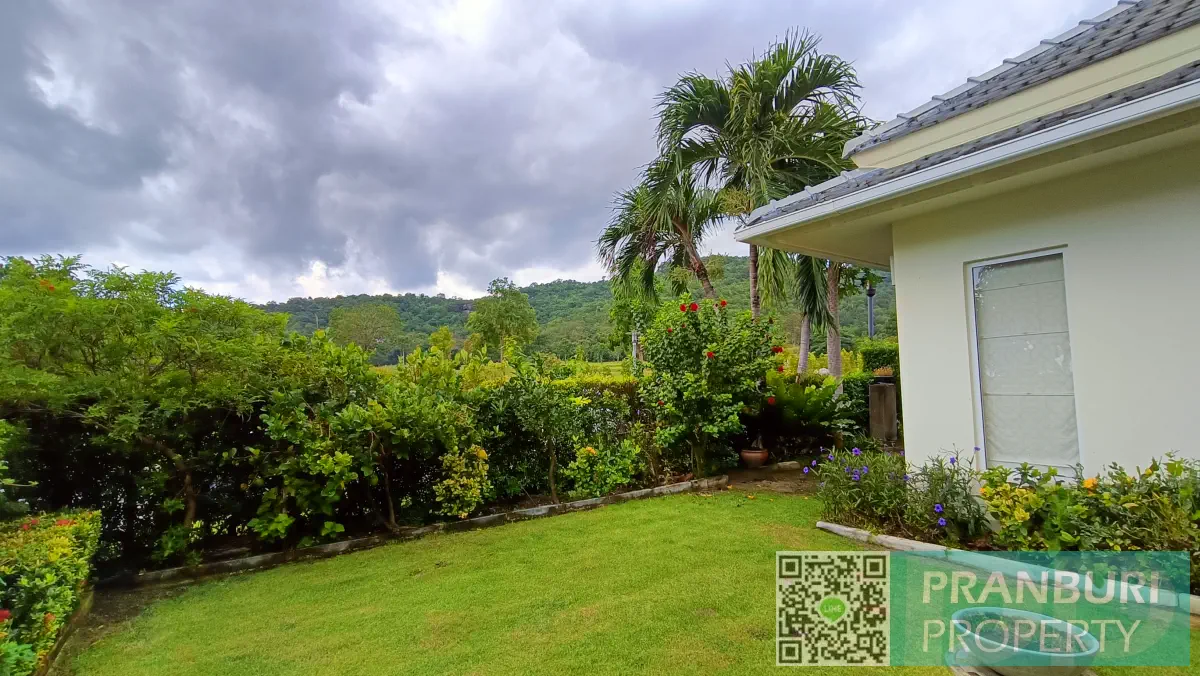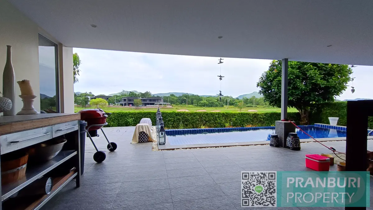 Located in the peaceful Hin Lek Fai area, the villa combines modern tropical design with a relaxed lifestyle environment surrounded by mountains, fairways, and landscaped greenery.
