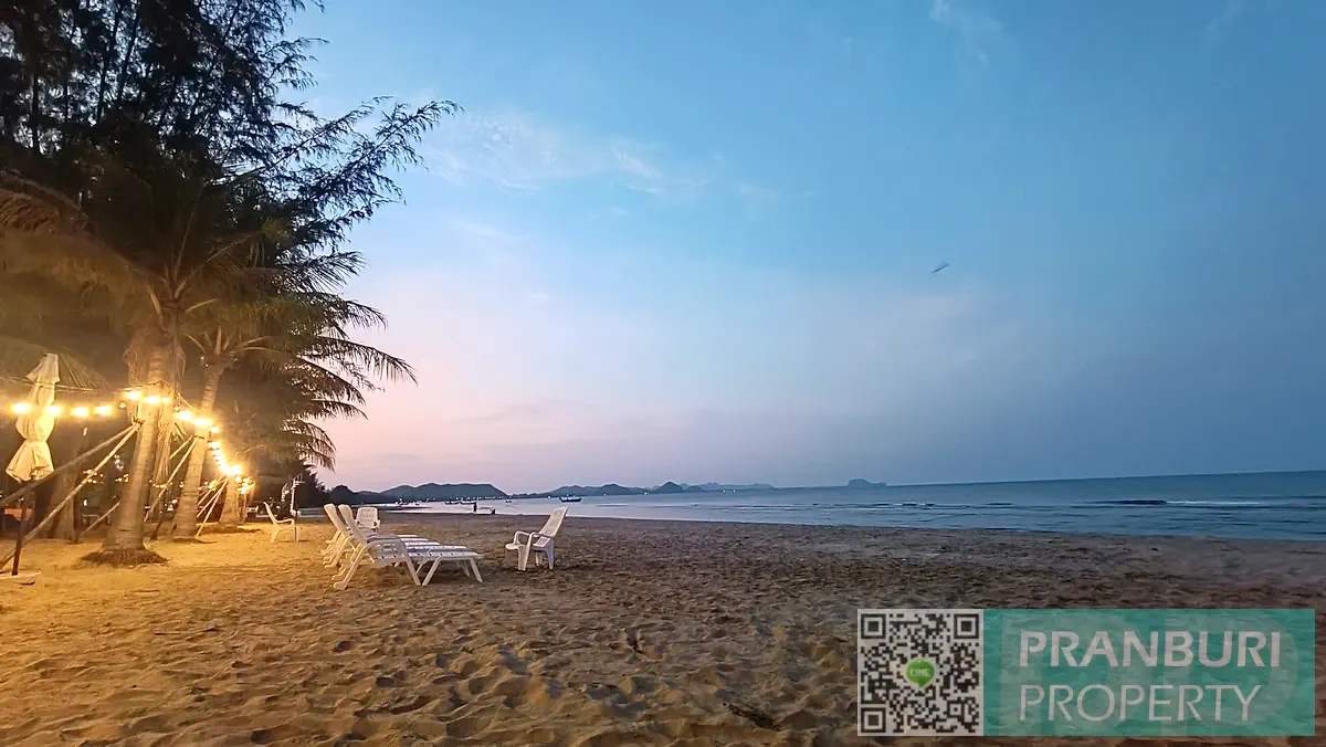 The setting is truly unique, with a dramatic limestone mountain rising just behind the land, creating a striking natural backdrop and enhancing both privacy and visual appeal. This stretch of coastline is known for its calm atmosphere, wide sandy beaches, and proximity to local restaurants, cafés, and boutique resorts, while still being within comfortable reach of Hua Hin and around 20KM to Paknampran town.