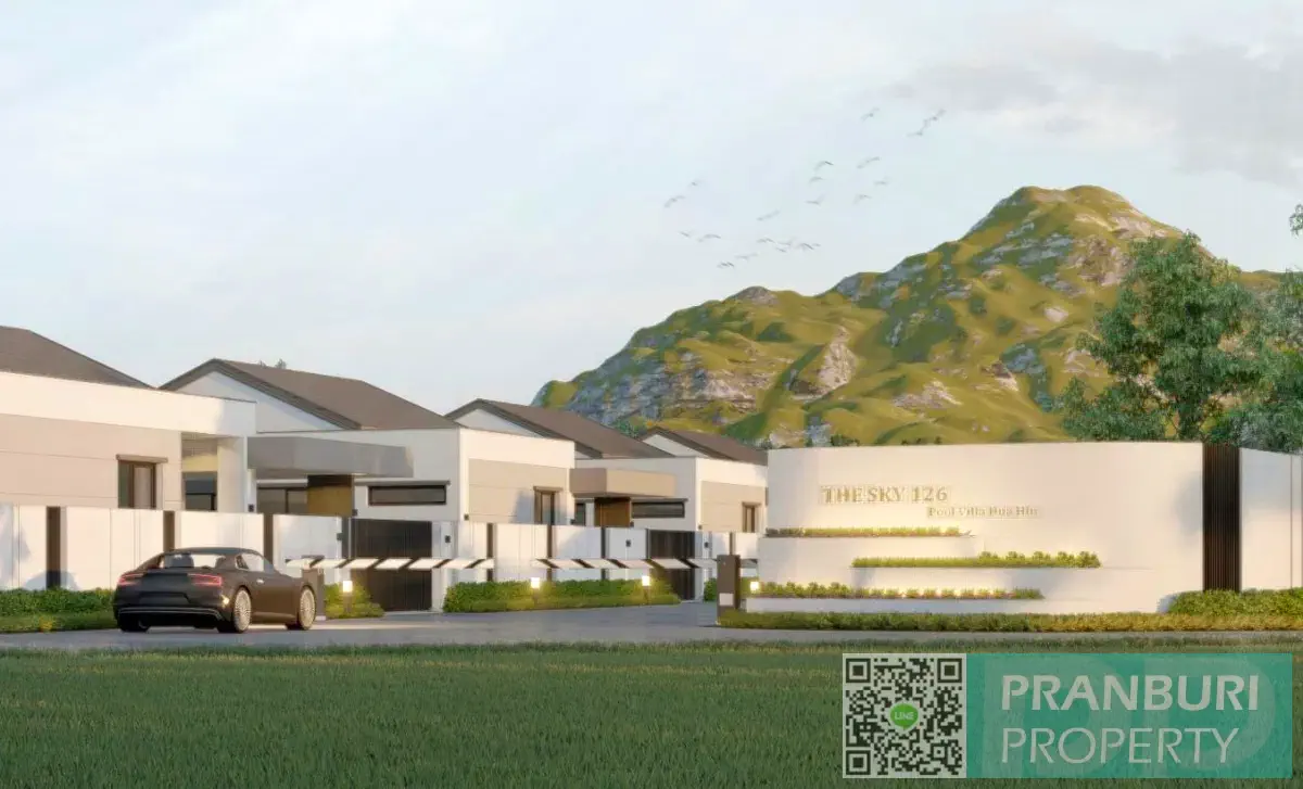 The Sky 126 Hua Hin is an exciting new pool villa development near Khao Tao Beach and Sai Noi Beach, located in the desirable southern Hua Hin area close to Pranburi and Samroiyot. This modern project combines contemporary architecture, private swimming pools, and spacious land plots to create a relaxed lifestyle environment just minutes from the coast